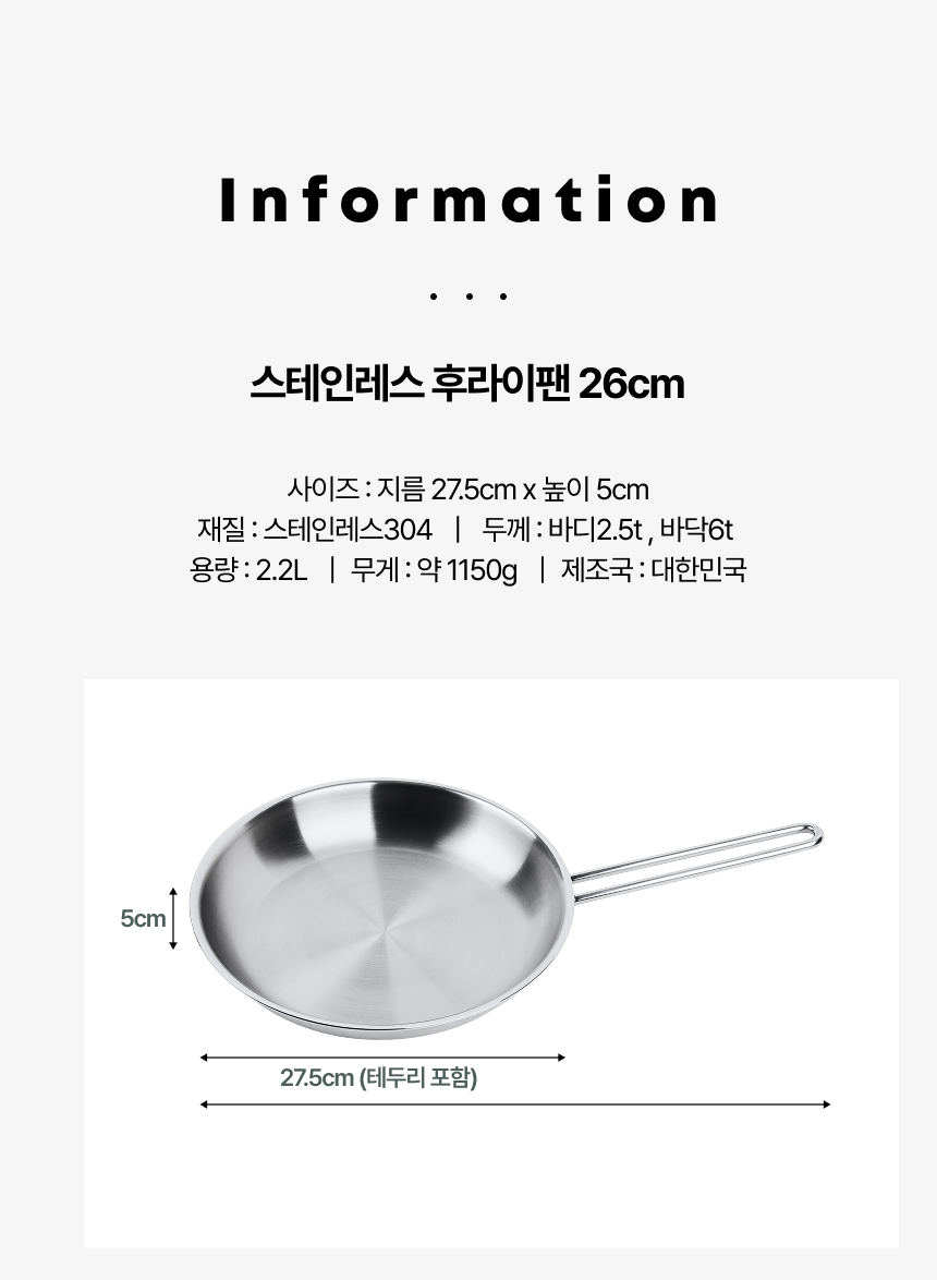 후라이팬 26cm 통5중 바닥7중